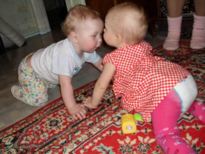 А еще к нам приходил жених!!! на 3 месяца старше нас :) Уж так он обхаживал, уж так серенады пел)) А нашей - пофик)) Несоциальная она пока личность))