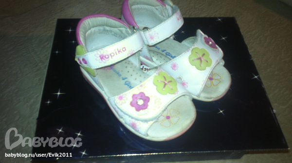 Босоножки Kapika Размер 20. Великолепно подходят к любому наряду девочки. И носы не обдираются! Очень хорошее состояние.