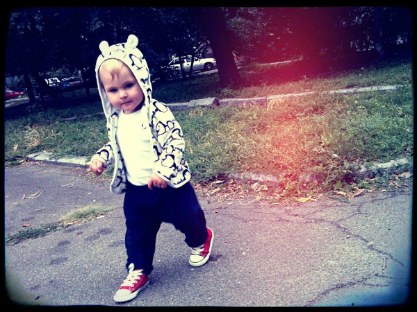 Недели две назад папа показал сыну как изъясняться при помощи указательно пальца. И с тех пор этот палец у нас никуда не девается, постоянно торчит, иногда и два. Это очень облегчило нашу жизнь: понятно что именно хочет ребенок и когда. А еще это очень забавно выглядит.