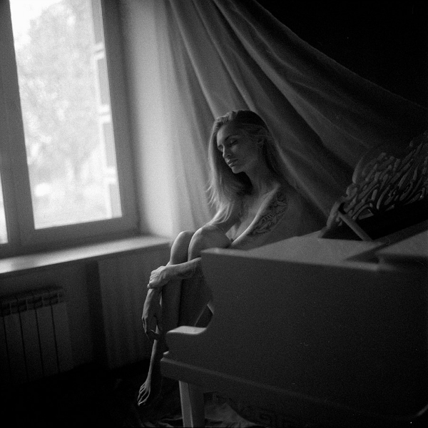 Перед концертом мамочку успели пофотографировать. Несколько кадров на ч/б пленку широкоформатную. Есть у нее особый шарм, атмосферность, я даже сама себе нравлюсь, а такое бывает редко...