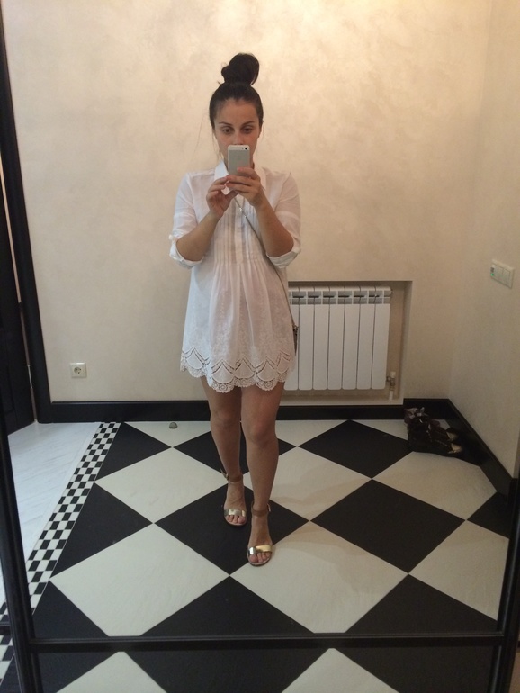 Белая блуза размер 46 указан, но я носила с 42-48, под грудью сзади поясок утягивается, очень красиво обозначает грудь , рукавчик подхватывается петлей, состояние блузы отличное, цена 800 руб.