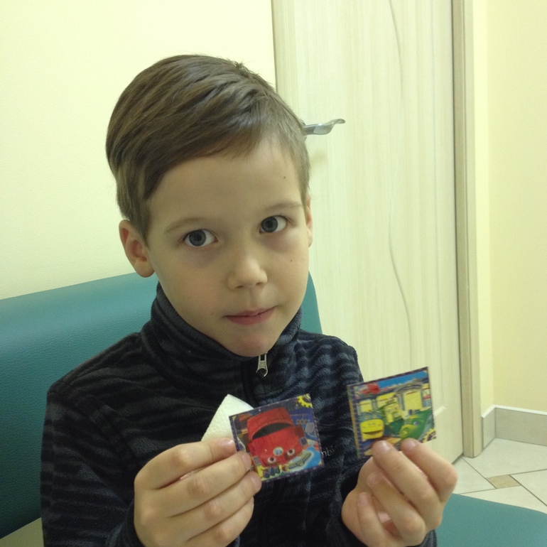 Маленький принцНе дождались мы выпадения зубов.. Позавчера пошли в клинику и выдернули их :) Сидели очень крепко, так что выпадения мы бы не дождались точно. Даня был просто умницей, гмужественно перенес эту процедуру, с уколом конечно. Но даже не пытался ни плакать, ни сопротивляться. Просто сел в кресло и героически молчал от и до. В подарок получил свои зубы, две наклейки за каждый зуб и набор Лего Нинзяго от родителей:)