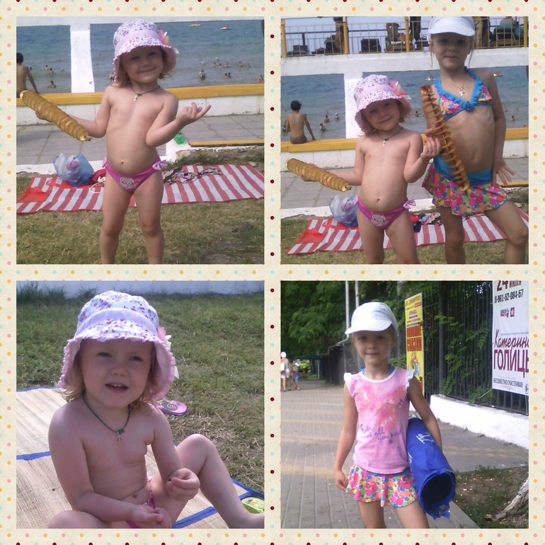 Ездили мы на море в Дивноморск,выехали в субботу в 5 утра, а приехали в 9 утра(пробки просто кошмаркошмар).Девчонки были рады морю,даже волны их не испугали.Но для себя я решила,что туда не поеду больше:во-первых перевал для меня очень страшный,крутые повороты,во-вторых дурацкий пляж со ступеньками