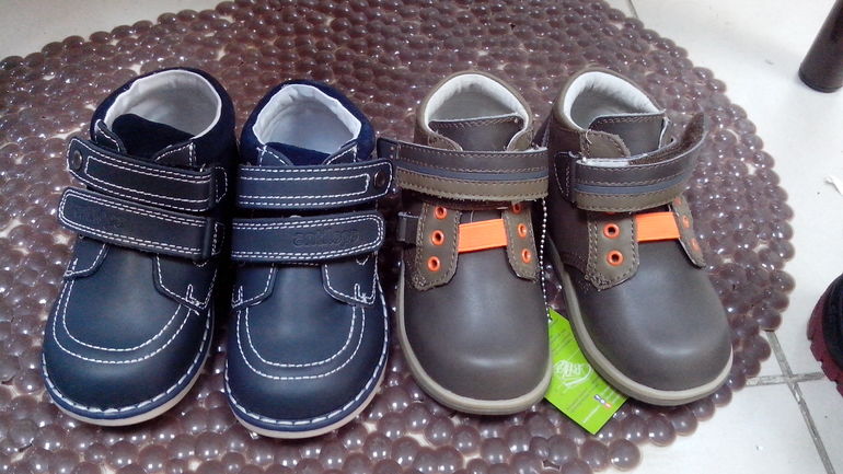 Наконец то купила обувь Малышу. Еле нашли ботиночки без меха, чисто кожаные. 😊 Он их сам выбрал... Мне нравились коричневые, но их одевать Труднее и подошва совсем уж плоская. Которые выбрал Максимушка - синие, одевать легко, подошва рельефная с хорошим не большим каблучком, с супинатором. Он, конечно, на эти достоинства не смотрел, только лишь на внешний вид, но Я их взяла за достоинства. Ну уж больно хотелось коричневые... Я бы даже еще походила, поискала, но Максим схватился за эти ботиночки и не хотел их отпускать, настаивал одеть на ножки. Пришлось брать... А дома посмотрела у него обувь то красная, то красно-синяя и вот эти синие 😁