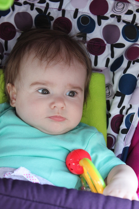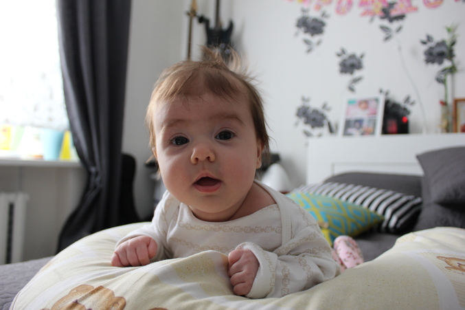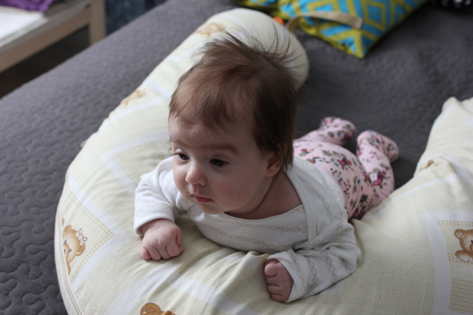 Целых два дня собиралась написать пост) Итак нам 4 месяца весим приблизительно 5800 и рост где-то 62 см.Пока ещё не перевернулись(( Зато мы очень разговорчивые, целые тирады мне выдает, любит лежать на развивающем коврике и в игрушки играть. В субботу ездили в магазин вместе с Василисой я брала с собой май-слинг (дали попользоваться), ну вначале она спокойно сидела и глазела по сторонам, а потом раскапризничалась и мы бегом бегом до машины. Ещё у нас появилась тут некоторая проблема, Василиса не хочет пить из бутылки, нас позвали в гости прошлую субботу, мы её оставили с бабушкой и спокойно ушли, через некоторое время звонит бабушка и говорит, что дочка выплевывает бутылку, в общем накормить так и не удалось. Вот теперь вообще непонятно как её оставлять.