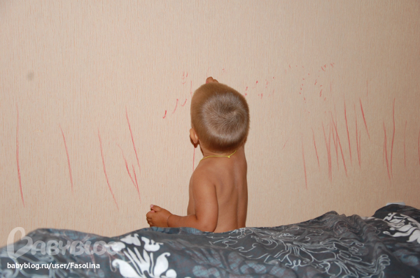у нас тоже отдирает. ну и изрисовал все. это я еще зеркала не сфоткала, там вообще шедевр... весь пол изрисован, шкафы на кухне, посудомойка, даже горшок изнутри:)