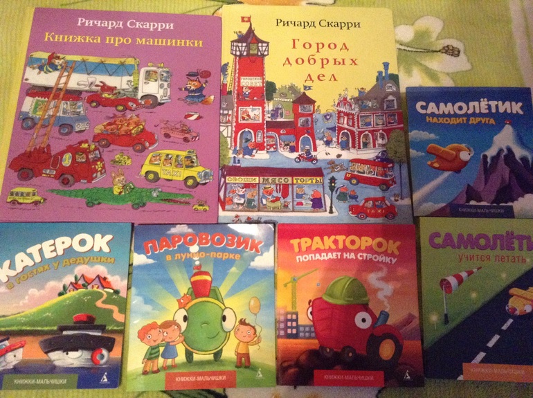 А эти книги были любимые у Магомеда с 2 до 3 лет. Алина их не любит, маленькие книжки послушала 1 раз в машине, а книги Скарри не разу до конца не слушала и не смотрела.