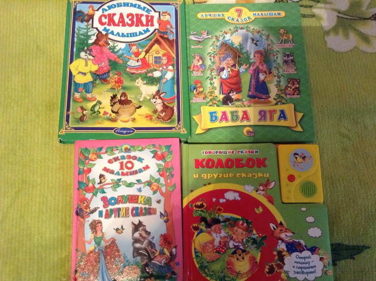 Сборники сказок - русские народные и другие классические сказки читали с года. Самые любимые у Алины - Белоснежка, три медведя, три поросенка,волк и семеро козлят