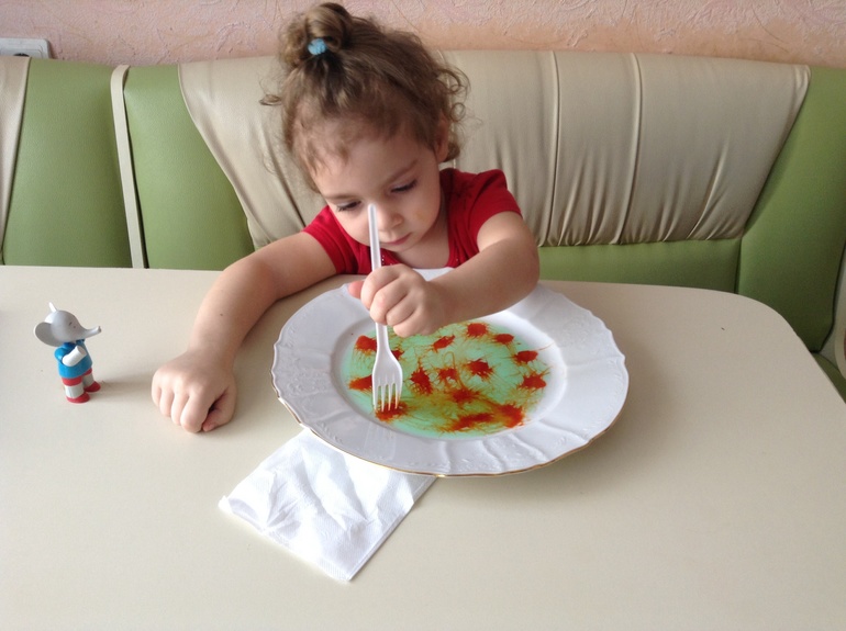 И на молоке порисовали, только Алина переборщила с красками и получилось не очень красиво