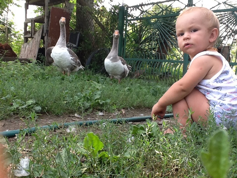 - в восторге от животных - в Абхазии гоняет гусей по всему участку, обнимается с теленком. В гостях видел на стиральной машинке наклейку с собачкой и кошечкой, так стал заливаться смехом и тыкать пальцем, и так каждые 15 минут туда подходил, показывал всем гостям "аву и кису".
