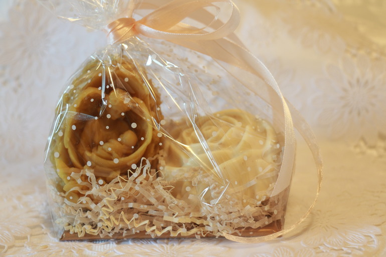В кусочках мыла хлопушки образуют свой, неповторимый узор, а мёд и прополис насыщенность и оттенок цвета.