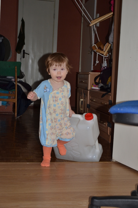 Мы тоже хозяйничаем на кухне))))) все кастрюли переберёт, баночки из-под пюре друг на друга поставит, луков шелуху на голову высыпит, картошку переберёт и формы для выпечки куда-нибудь засунет)
