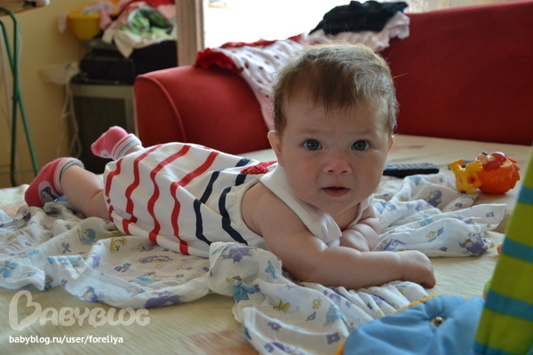 с 6ти вечера доча лежала в кроватке, переворачивалась на животик и уже сообразила как надо ползать, что не уткнувшись головой в пол/кроватку)