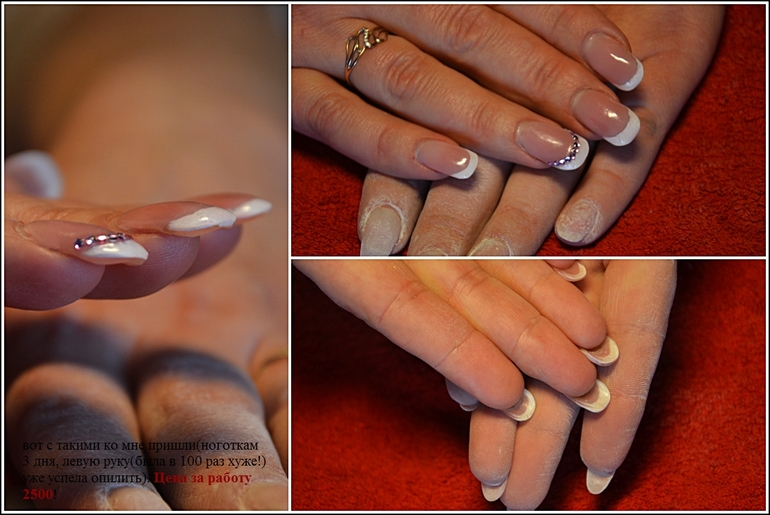 фото со 2го дня обучения - мягкий квадрат (2ой раз в жизни делала ноготки в технике "выкладной арочный френч")