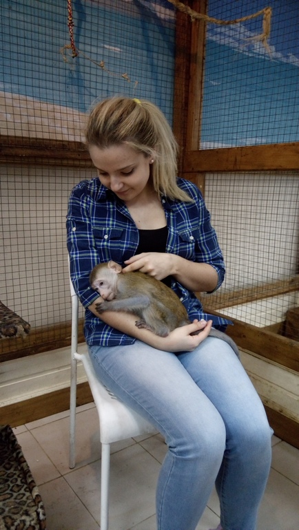 первое фото такое милое:) Обезьянка с такой любовью прижимается к Злате:)