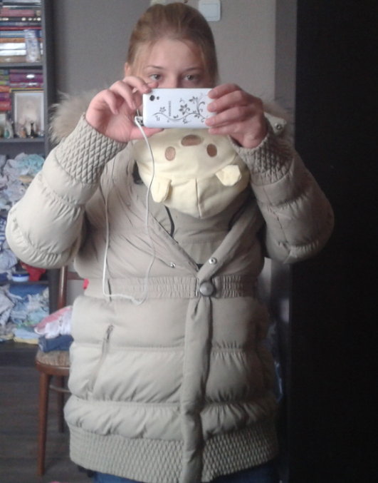 и вот как это смотрится на мне(пуховик беременный придется напяливать):