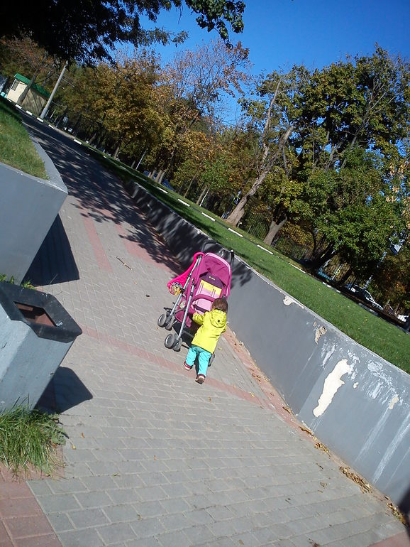 И с девочкой старше ровно на год - ей 2,5. У девочки был самокат. Звали девочку - Апполинария(!!!).