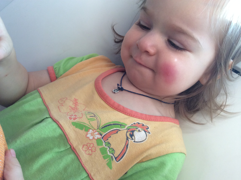 У нас так же. А она еще повадилась их расчесывать, и у нас уже есть пара следов-шрамов. Надеюсь — сойдут. Кошмар какой-то!