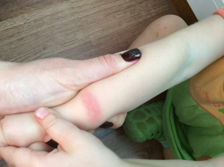 У нас почти так же, педиатр сказала что это аллергия на укусы , т е нужно избегать укусов, я купила браслет от каморов но он не особо помогает((( купила пижаму с закрытыми ножками (как ползунки) так спасаемся от укусов. На днях укусил комар в лоб к обеду выросла шишка, я подумала что он ударился, а на следующий день эта шишка как бы сползла на лоб ближе к переносице, я дитя в охапку и к врачу, сказала олегрическая реакция на укусы.((( а если тело укусят то так как унас обухает как прививка манту.