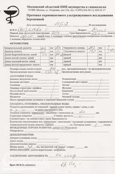 Я сегодня ездила в МОНИИАГ к Владимиру Алексеевичу Ананьеву. Радушно меня встретил (не виделись 7 лет)). Повёл делать УЗИ. Может из-за голодного желудка или нервов из-за проколотого колеса. А может просто Игоряша лёг мне на нижнюю полую вену, но через 5 минут лежания на спине , мне стало плохо. Я лежала и понимала что мне очень неприятно, а потом и больно в матке и я теряю сознание. Поэтому как только увели от меня абдоминальный датчик- я вскочила посидеть вертикально и от этого у меня закружилась голова так, что я думала отъеду)). Узист и Алексеевич мне говорят обернись на монитор, смотри на кого похож - а я смотрю и глаза как у срущей кошки. Мне как после кесарева не до этого))). Сразу же подтвердили что наш Игоряша никак не окажется больше Дашенькой и что он буит весить никак не меньше своего старшего брата а то и поболее. Мало того он и родится с разницей в пару дней и 7 лет)). Я наверно умею рожать только 4 килограммовых мальчишек по гороскопу-"близнецов")))).