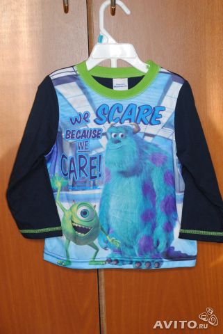 Очень красивая, яркая футболка с героями мультика Корпорация монстров. Размер 98 Ц.250 руб