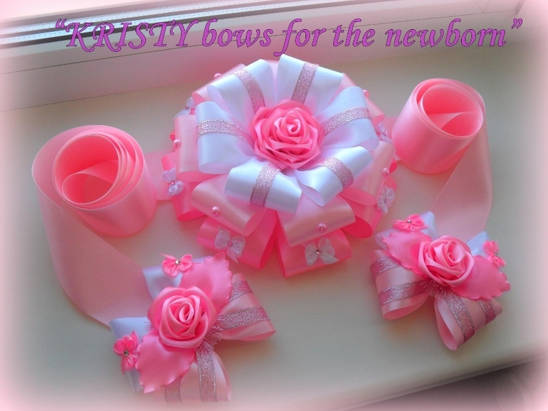 Дорогие будующие мамочки и их родственники . Предлагаю вашему вниманию шикарные банты на выписку из род дома вашего малыша ручной работы. Цена одного банта 500-600 рублей. Доставка почтой России бесплатная.