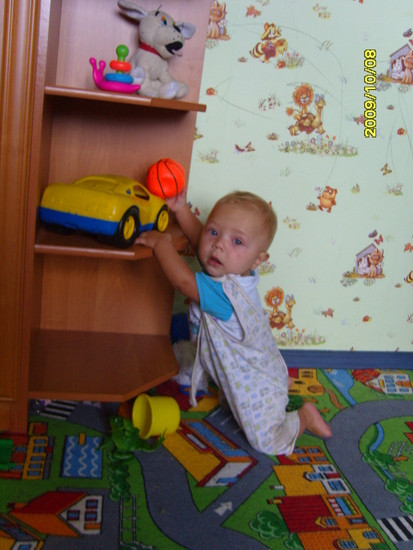 На той неделе Тимошка начал сам вылазить из кроватки, как он это делает я не видела. Но как я выхожу из комнаты, он выходит следом за мной.