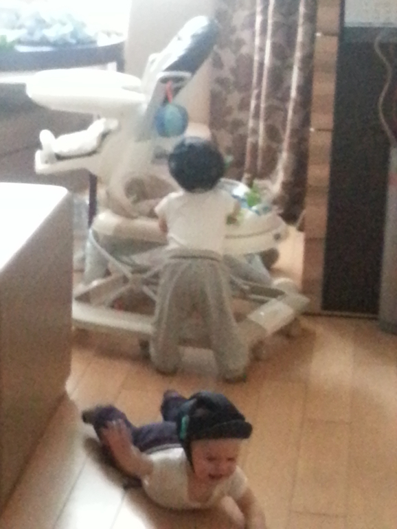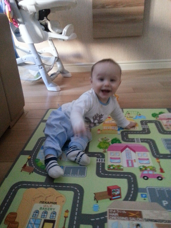 На сегодня Ходим держась за ходунки. Говорим папа, мама, баба. У обоих по два зуба с низу.