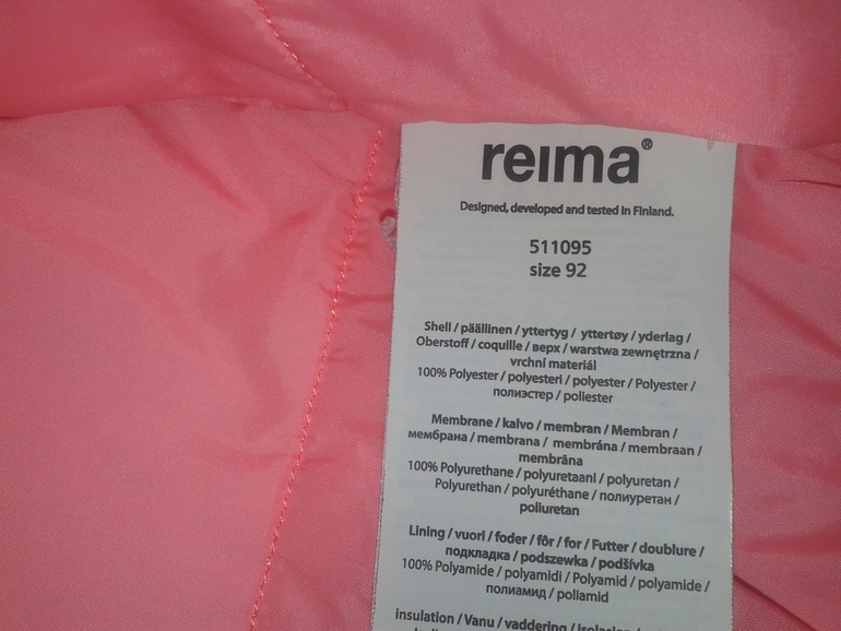 Запас в росте +6 см , как у все линейки Reima.
