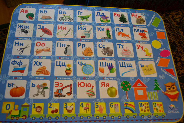 Ооочень интересно ребенку с ним играть (порвал,убрала пока,жду когда папа починит). Там есть несколько режимов-заданий. Надо или букву найти,или картинку по букве