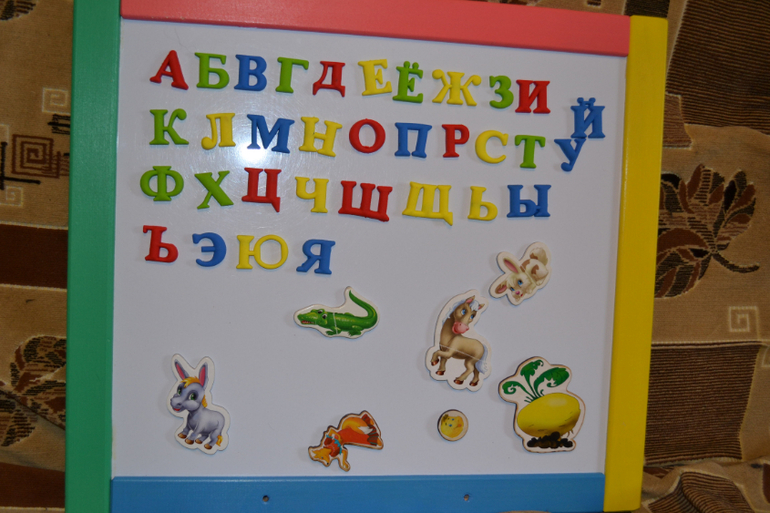 4.На годик нам подарили столик с буквами и цыфрами.Раньше мне казалось, что нужно было заказывать без рисунка столик, так как эти рисунки мешают, например, собирать пазлы.Однако теперь я рада, что он именно с буквами!На этом столике сын знает все буквы!Попроси - покажет любую!