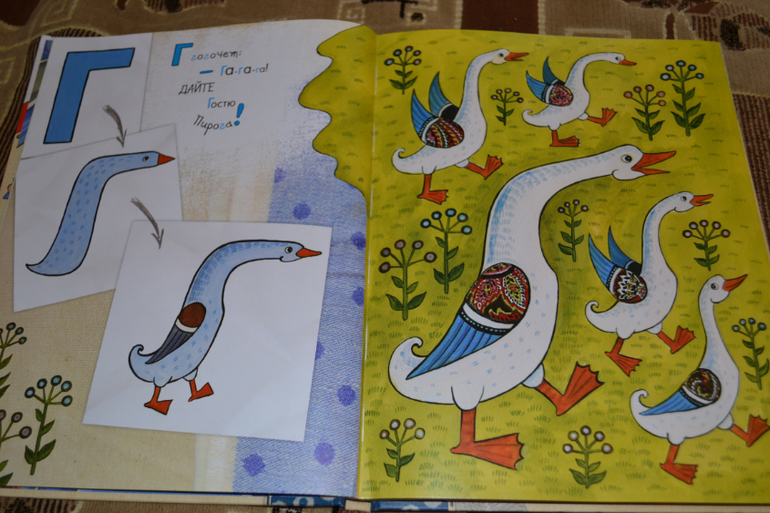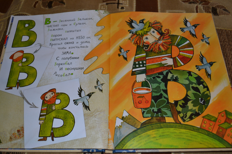 5.Долго выбирала я азбуку.Эту очень нахваливали, но не лежала у меня к ней душа.Хотелось такую книгу, где буквы не привязывались бы к каким-то конкретным картинкам и не вызывали ассоциаций.Однако ничего подходящего я так и не нашла и в итоге заказала её.И не пожалела!Книга просто чудесная!Понравилась сразу же и мне, и Диме!Оформление на высоте!Она интересна сразу с обложки, где можно потрогать выпуклые узоры и "волосы" акробата))) Сама идея такой азбуки, как оказалась, очень удачна!Сын с лёгкостью запоминает буквы, глядя на то, как они превращаются в кого-то или что-то))) А в конце книги кармашек, в котором раскраски с буквами))) Так сказать приятный бонус)) Нам конечно рано ещё их раскрашивать, но Дима периодически достаёт эти карточки и пересматривает))