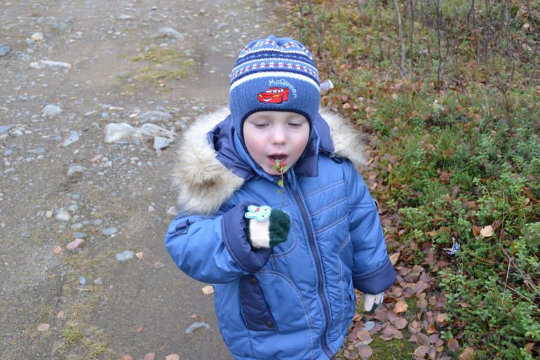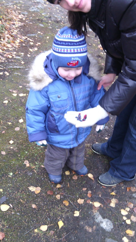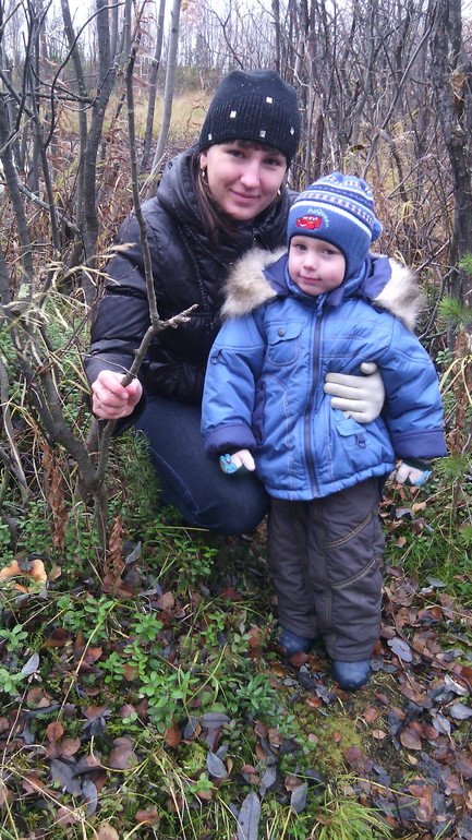 В это время ягод и грибов в наших краях уже практически нет, но мы умудрились найти немного брусники и черники и даже парочку грибов.))Черника сыну понравилась, а вот бруснику не оценил - кисловата))