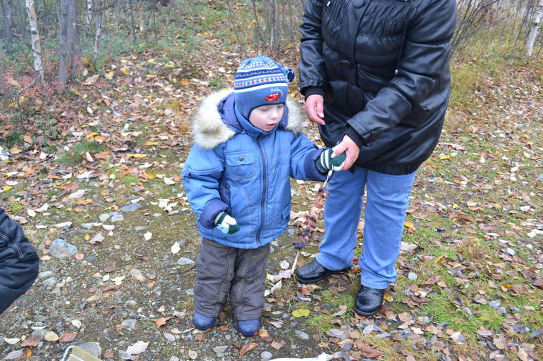 А потом мы учили словосочетание "озеро Имандра".У сына получилось "озеё Иманда".Мама и муж сказали не учить сына неприличным словам))) Я говорю: "Это для вас они неприличные, а для сына это просто название озера"))) А когда мы нашли гриб, сорвали его и дали Диме, он долго разглядывал его, а потом случайно уронил, и гриб развалился на 2 части - ножку и шляпку.Какое это было горе!Дима рыдал как никогда!Никак успокоить не могли.Пришлось придумать, что гриб всё равно был червивый, и теперь его найдёт и скушаем мышка))