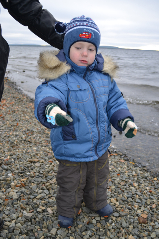 Что говорить, после отпуска нам всем не хватает моря, волн и жаркого солнышка...Я попыталась объяснить ребёнку, что это не море, а озеро, т. к. вдалеке видно бережок.Озеро как море, только маленькое)) И волны на нём не такие большие.А ещё наше озеро холодное и в нём сейчас не купаются.Но Дима и тут нашёл чем заняться - подбирал с бережка камушки и кидал их в озеро, причём выбирал самые "басё!", а т. к. летели они у него не далеко, а прямо ему же на голову, пришлось уговаривать выбирать камушки поменьше)))