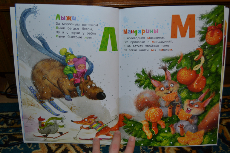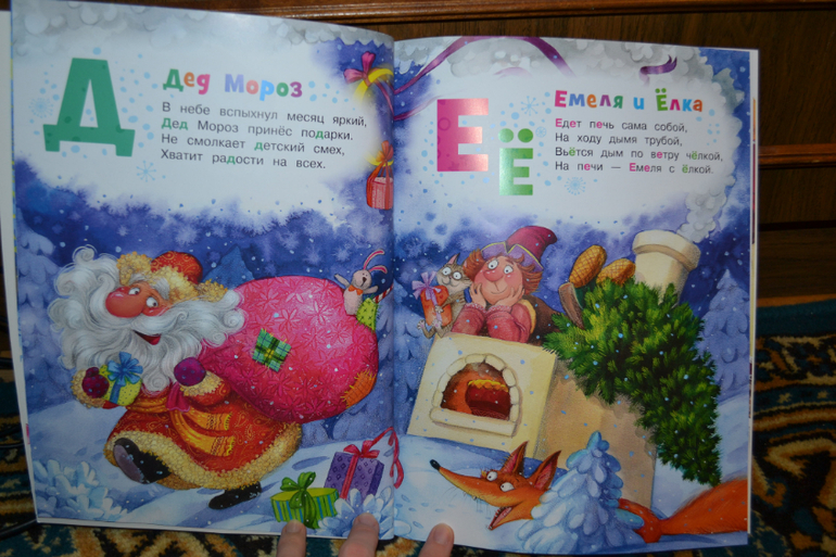 Эту книгу купила в фикс-прайсе.Там было множество зимне-новогодне-рождественских книг, но мне приглянулись только две.Эту книгу мой сын, как любитель букв, сразу оценил.Приносит читать очень часто.Читается легко, быстро и весело.Иллюстрации яркие, весёлые.Стихи не тянут на высокую поэзию, простенькие и многие "высосанные из пальца", но попадаются и вполне сносные.Нам с Димкой особенно понравилось стихотворение про Юлю и юлу)))
