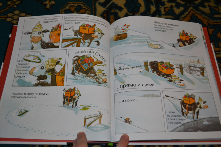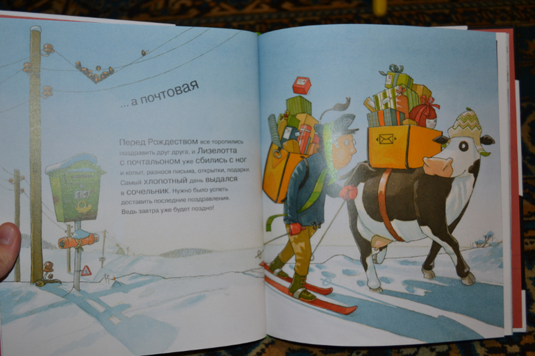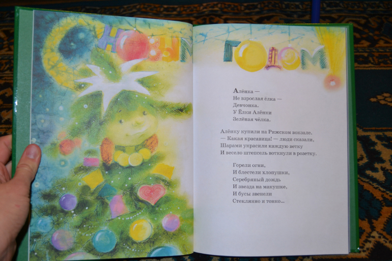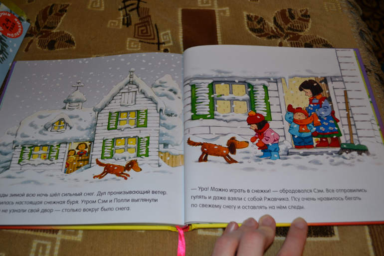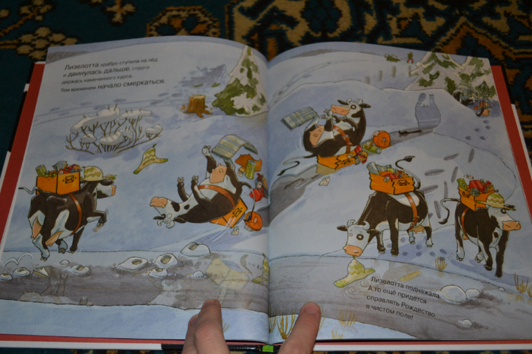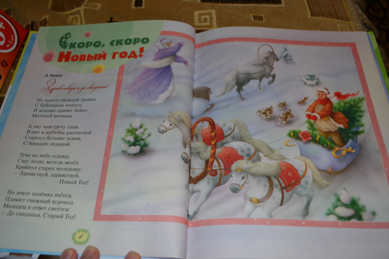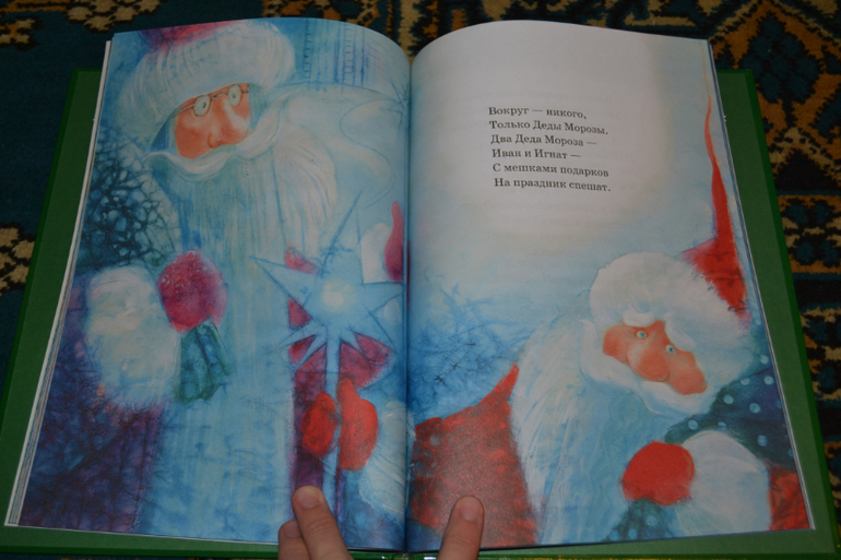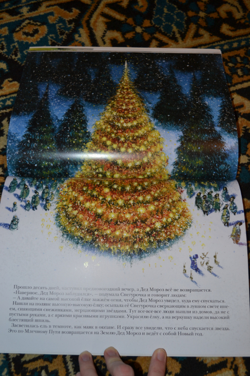 Этой книгой конечно никого не удивлю) Очень уж часто она мелькает в зимне-новогодних обзорах.Даже удивительно, как её хватило на всех в то время, когда многих из тех книг, которые я показала выше, уже нет в наличии...Вот и мы её приобрели, хотя нам и рано пока читать - слишком сложный текст для нашего возраста.Покажу всё равно)) Правда никак без бликов не получилось сфотографировать...(