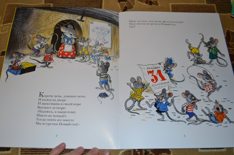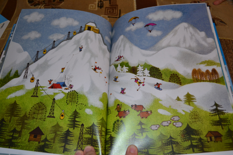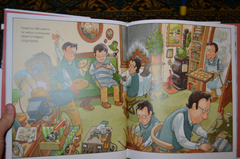 В прошлом году купила аж две книги Бернер и до сих пор они не в почёте у сына.Достаём раз в 1-2 месяца, смотрим 5 минут (в этой книге нравится следить за Сантой на мотоцикле) и убираем обратно на полку...Надеюсь, время этой книги ещё впереди!Если говорить о моих впечатлениях, то мне не очень нравится, что книга не о нашей, русской зиме.Развороты со снегом только последние два, зимой на деревьях сидят попугаи...И таких нелепостей, которые как-то придётся объяснять сыну, много...