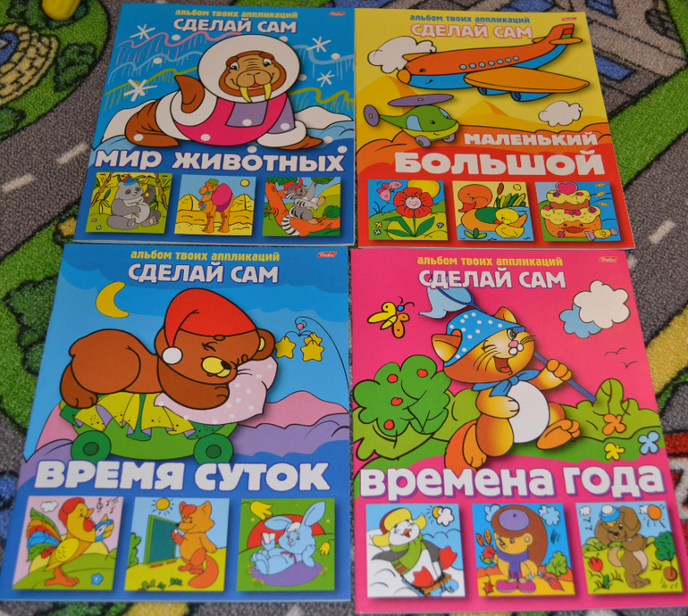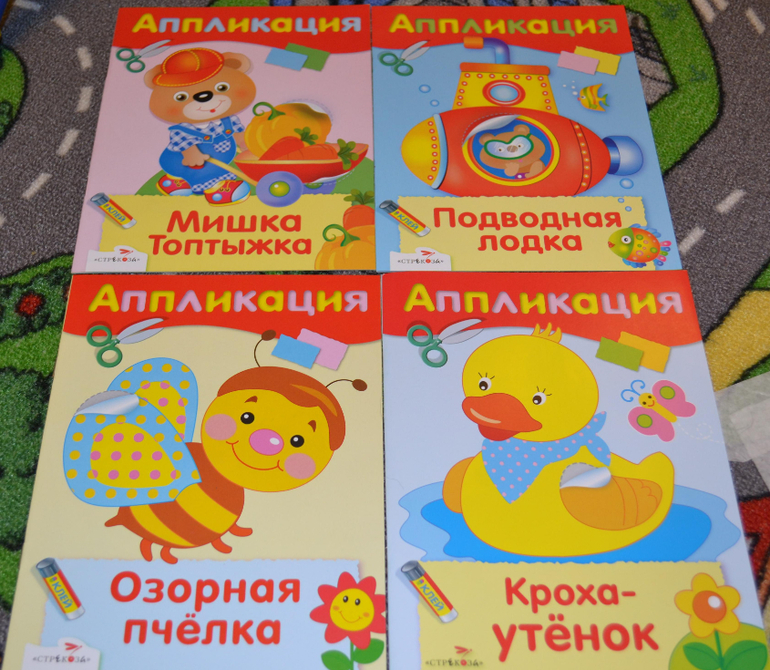 Очень бюджетная аппликация, но странички толще, чем у Стрекозы, детали крупнее.Вырезать их легко.Нам с сыном это пособие понравилось.Единственный минус - аппликация недолгоиграющая, вырезали и наклеили всё минут за 20.