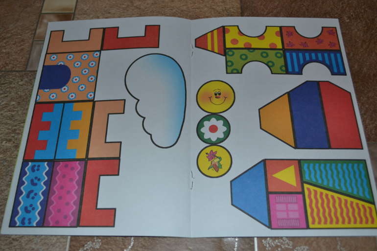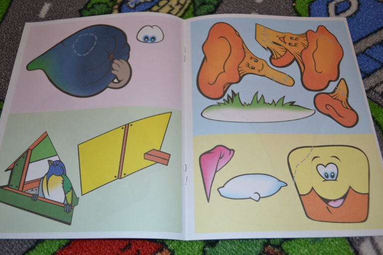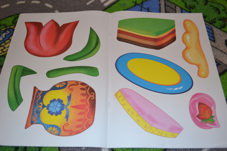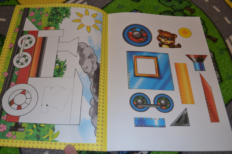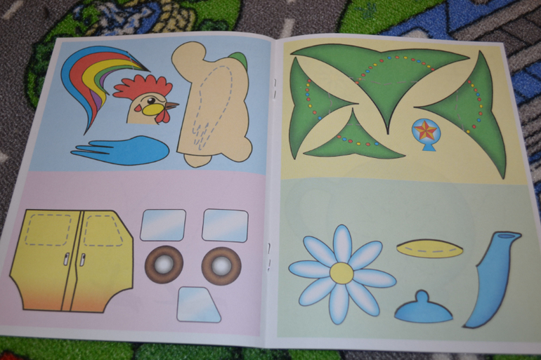 Детали крупные, легковырезаемые, для ребёнка пособие оказалось интересным. Однако бумага тоненькая. Кроме того не предусмотрено места, куда нужно клеить.То есть нужно брать какой-то свой листок и клеить на него, а скомпоновать так, чтобы получилось аккуратно, тяжеловато, особенно для ребёнка.