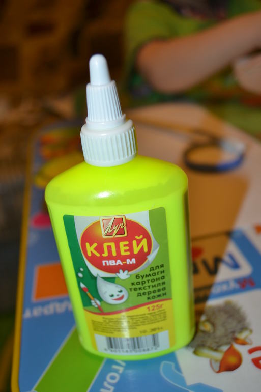 Отдельно хочется сказать о том, что клЕим мы чаще всего с помощью клея-карандаша, но иногда с помощью клея ПВА и кисточки.Думаю, ребёнку нужно дать попробовать и тот, и тот вариант, т. к. эти два способа отличаются и требуют разных навыков.Клей-карандаш можно брать простой, но тогда есть вероятность, что детали будут промазаны недостаточно хорошо, и нужно будет подклеивать.Если же брать клей-карандаш цветной, то ребёнку будет хорошо видно, где он помазал, а где нет.Хотя и это не гарантия, что помажет он качественно))) Я стараюсь покупать цветной клей.Например такой: