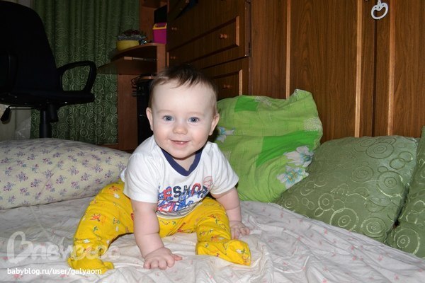 Фото и рассказы о малышеПрошедший месяц стал для нас самым "продуктивным"))) Во-первых, вылезли первые два зубика!)) Во-вторых, Димуся встал на четвереньки.В-третьих, он сел!Из положения на четвереньках.Сидит и на попке, и не коленочках)) В-четвёртых, он пополз!Одеяла нам теперь мало.Выпустили ползать по комнате.Ловим теперь...В-пятых, мы ввели прикорм.Кушаем кашки: рисовую, гречневую и кукурузную.Кукурузную правда не очень жалуем...Пытается вставать, опираясь на диван или кроватку.Игрушки нас мало интересуют.А всё, что "нельзя", то нам "нужно")))