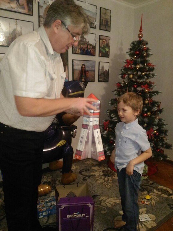 От нас были подарены еще несколько конструкторов лего, дедушка с работы принес и подарил ракету с питанием космонавтов))