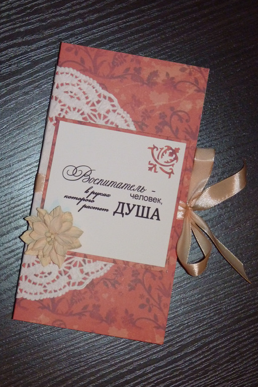 Так как мы с зайкой проболели и день воспитателей, и день учителей, то я так и не села делать шоколадницы.. Но есть шанс, что мы вот-вот выйдем в садик, и поздравить все-таки хочется, тем более что подарочки лежат ждут.. Вот попробовала сделать первую шоколадницу, оцените)) а то мне еще парочку делать, а может и не надо мне этим заниматься?))
