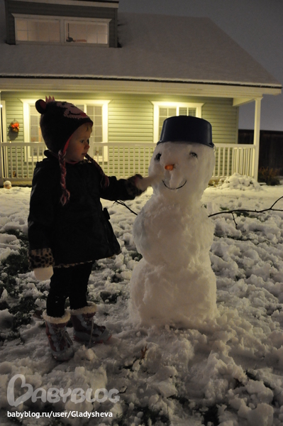 Снега у нас нет. Но он был и было много, мы даже успели слепить снеговика (даже двух) и покататься на санках на дворе!