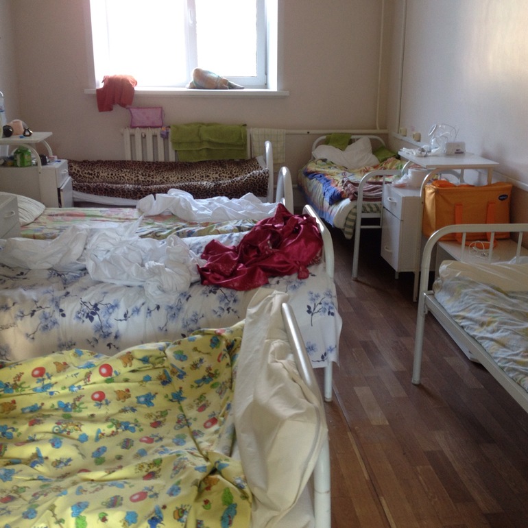 Надо сказать, что условия пребывания там не ахти. Комнаты для мам отдельно от детей. Дети в малюсеньких душных полубоксах (по два ребенка на полубокс) на первом этаже, комнаты для мам (от 4 до 12 человек) на втором этаже. Там такая система, что оставляешь свой номер телефона и тебя вызывают, если ребенок кричит. Но все равно, почти все мамы находились со своими детьми и днем, и ночью. В палатах всегда было пусто...