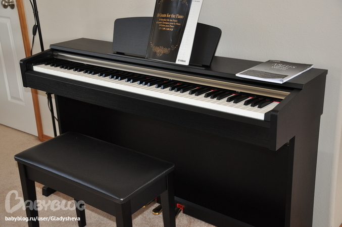 Это - цифровое пианино, Yamaha, в комплекте даже табуреточка была и альбом с нотами 50 самых известных произведений.Более того, оно еще и само воспроизводит эти произведения в отличнейшем исполнении! Так что мы не только играем, но и слушаем фортепианные произведения.
