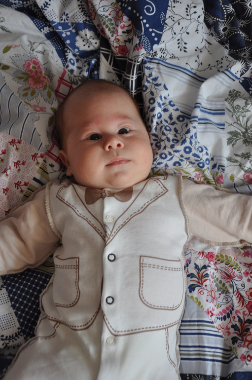 Валя в 2 месяца носит вещи Гели, которые она в 3-4 мес. носила. Одним словом, мужик! ))