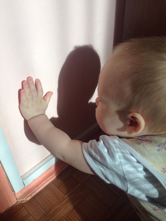 и все утро подползает к нему и пытается познакомиться-что то говорит на своем чисто русском)))