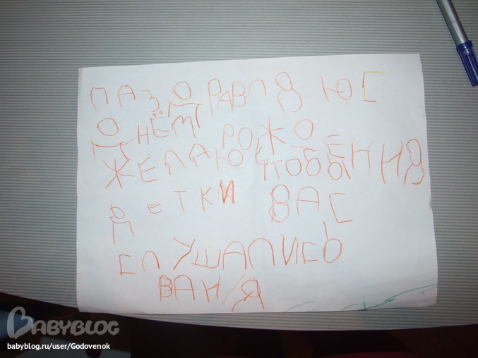 Детишки-сынишкиВаня все пишет. Получается все лучше и лучше. На мой взгдяд, для ребенка, которому 1.5 месяца назад исполнилось 5 лет очень даже неплохо.